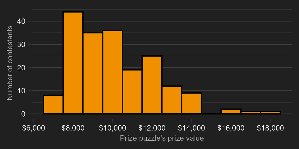 - In those episodes, excluding the Prize Puzzle’s prize value from player totals would deny the Prize Puzzle winner their main game win 37% of the time. (134 / 191 = 37%)